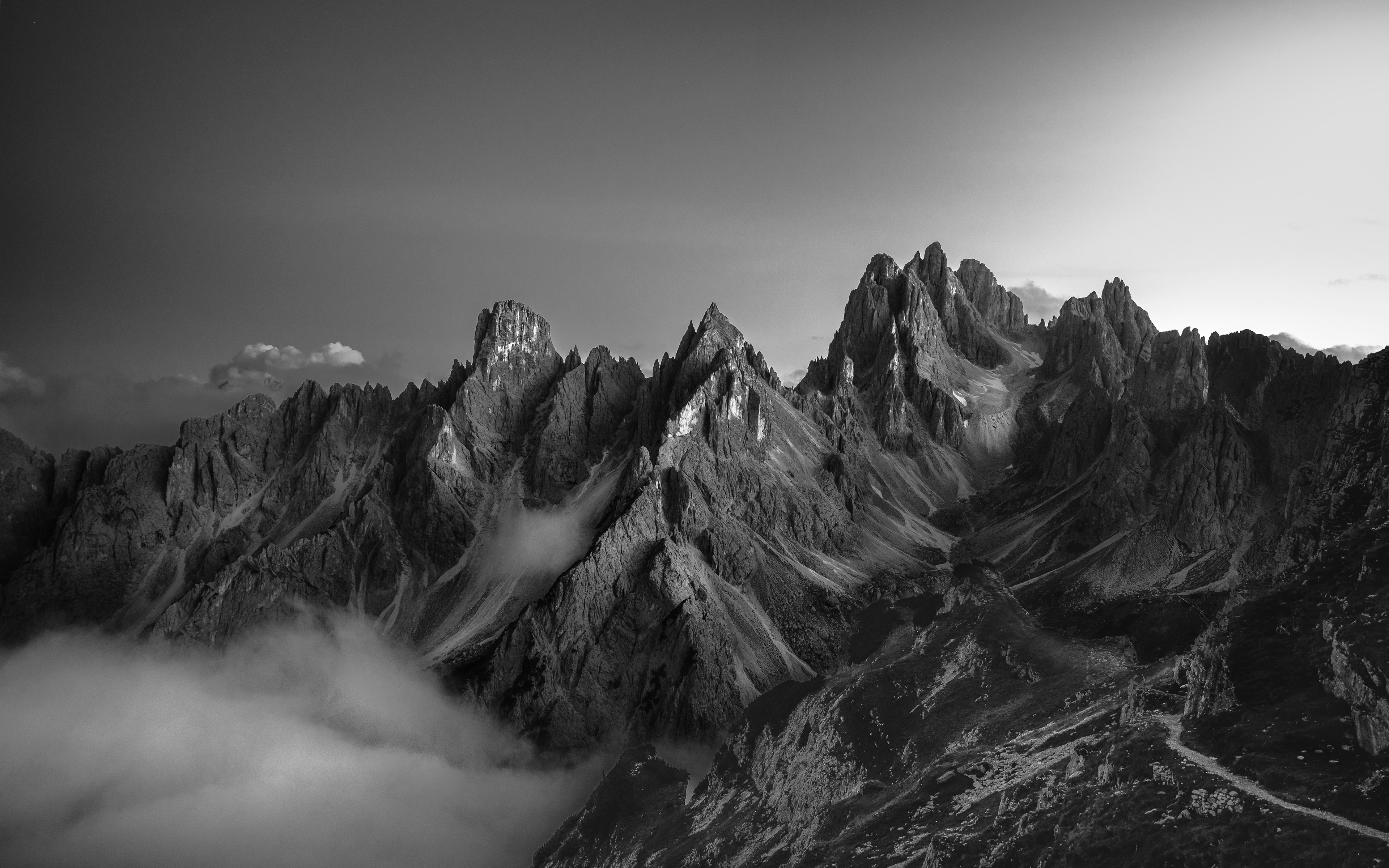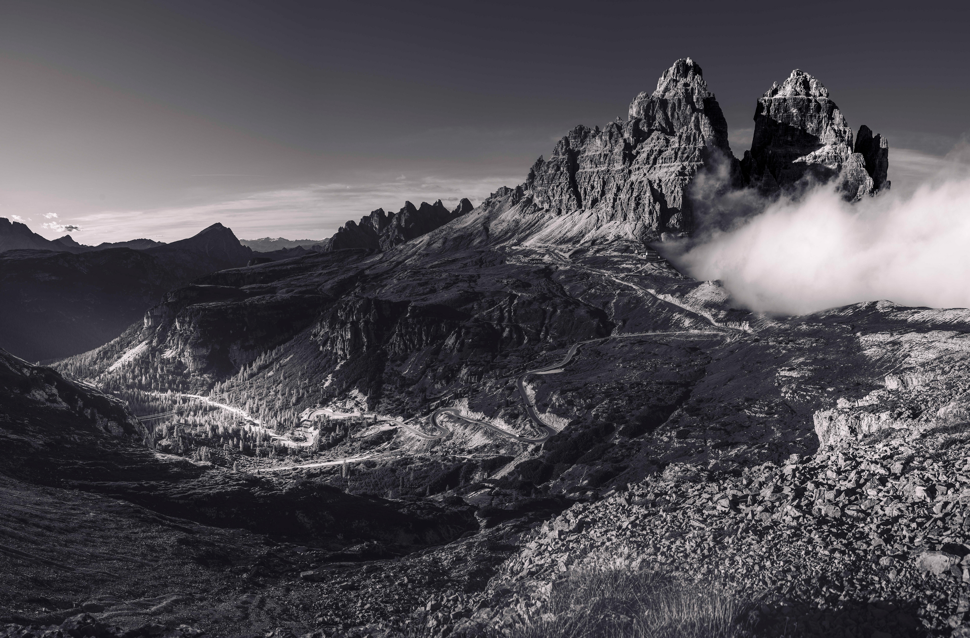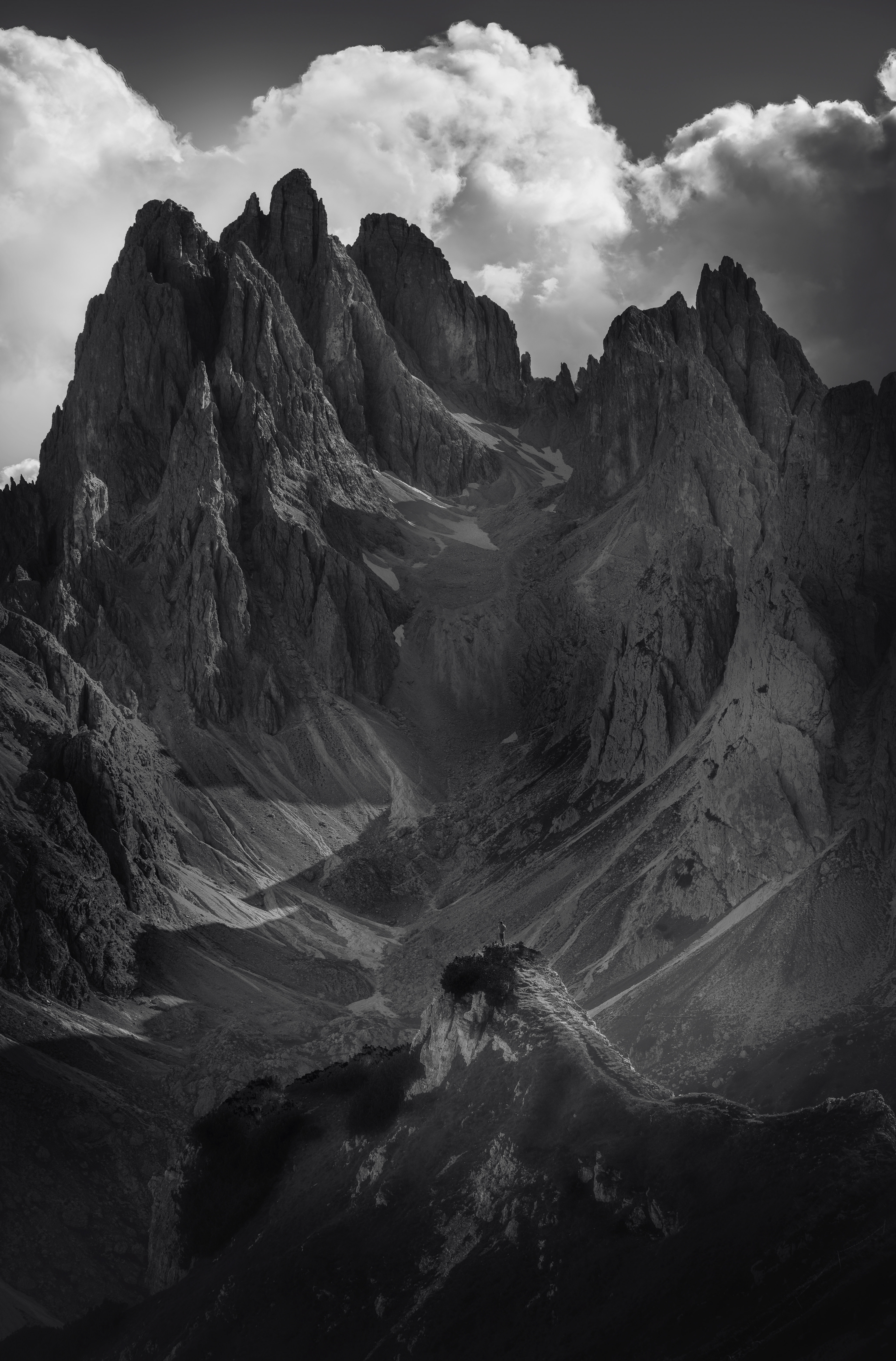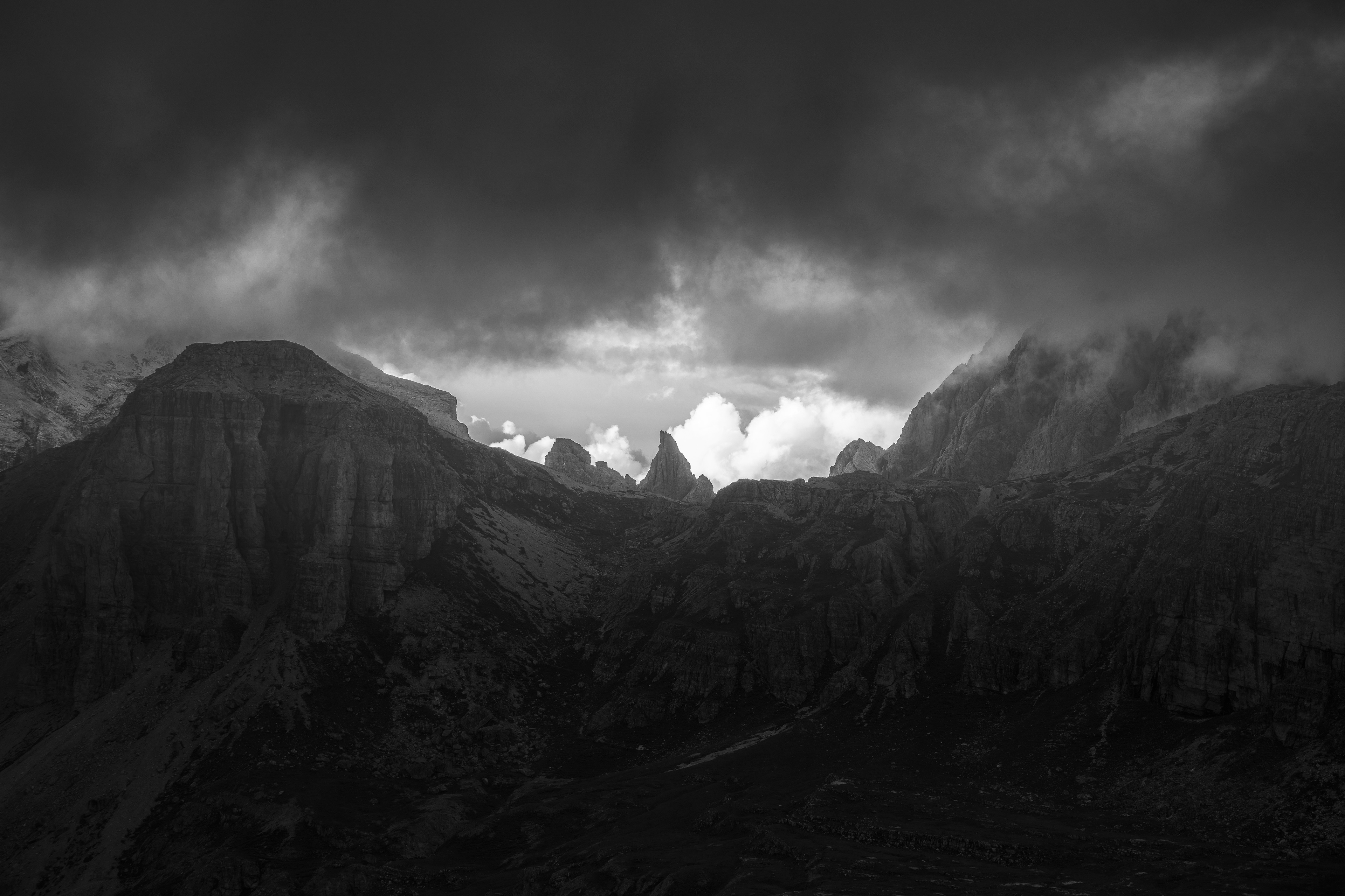 Dolomites are a photographers paradise. I was fortunate to spend a week there last year, hiking and photographing the majestic peaks. There is something about the stark jagged peaks that lends itself well to B&W photography